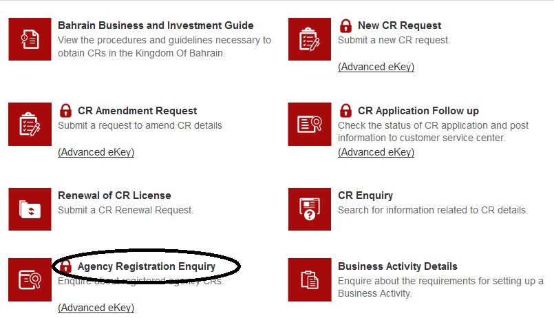 Ministry of Industry & Commerce provides this service to all businessmen and investors who would like to inquire and receive information on registered agency commercial registrations in the Kingdom of Bahrain.
