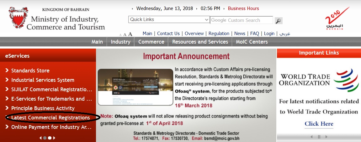 moic.gov.bh Agency & Commercial Registration Enquiry Bahrain : Ministry of Industry & Commerce
