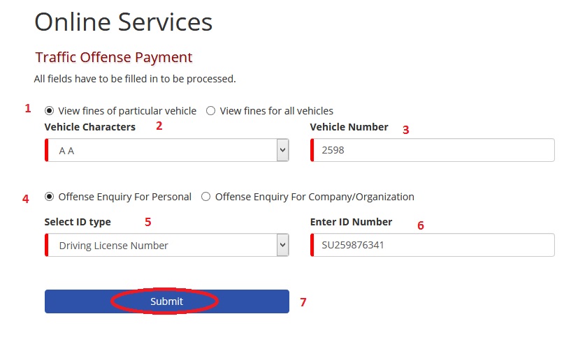 1. Select View fines of particular / vehicle View fines for all vehicles