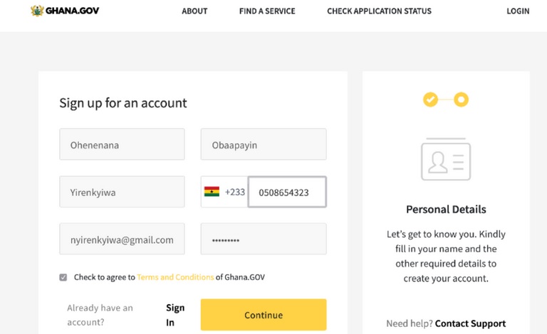 ** If you already have an account on Ghana.gov, click on Sign In. This will take you straight to the Passport Application site