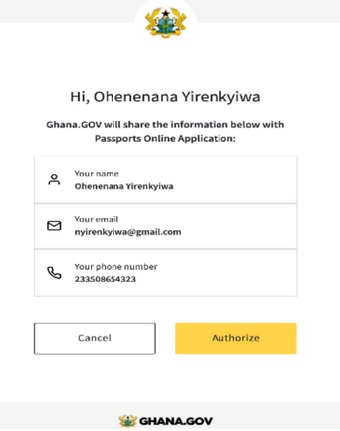 ** Click on “Authorize” to enable the application share your details with the Passport Application portal