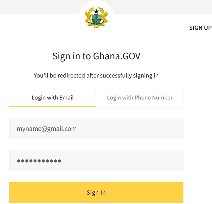 ** You would be redirected to the Ghana.gov login page