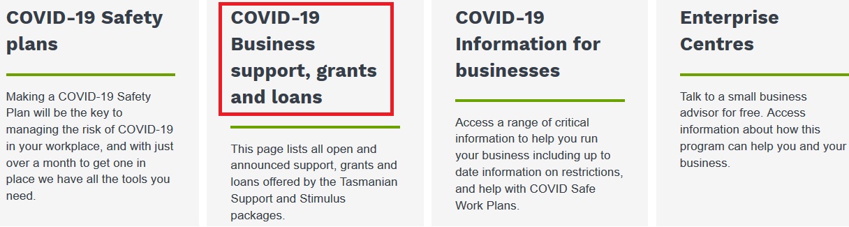 Website : https://www.business.tas.gov.au/covid-19_business_support_packages/covid-19_small_business_sustainability_and_recovery_grant_program2