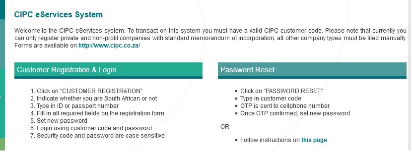 Register Here : eservices [dot] cipc [dot] co [dot] za