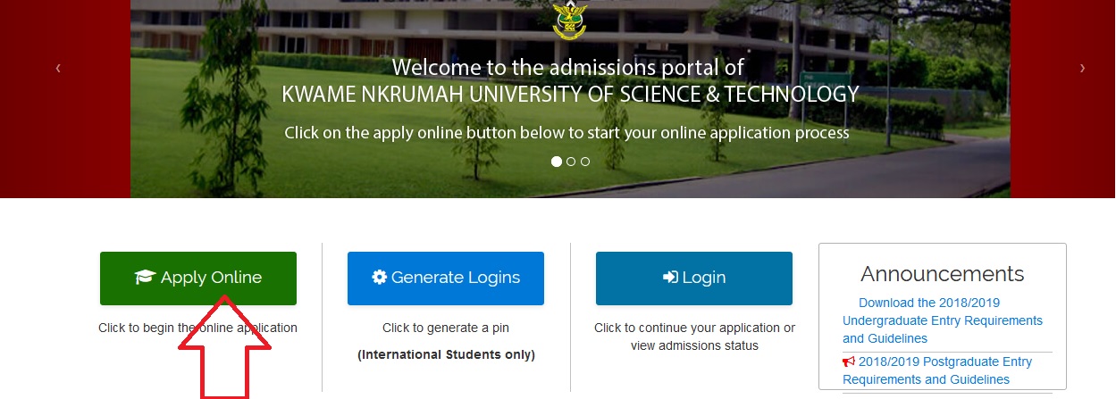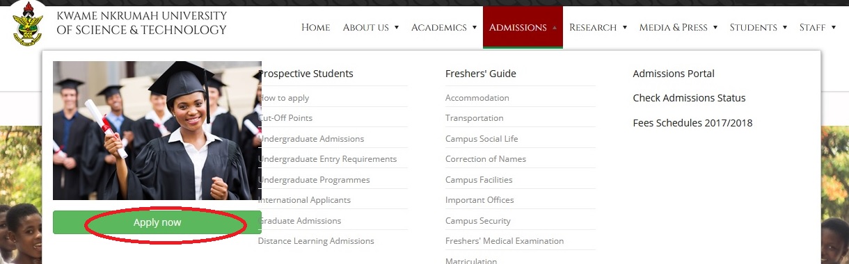 Just follow the below steps to register at KNUST Undergraduate UG Online Admission System Ghana