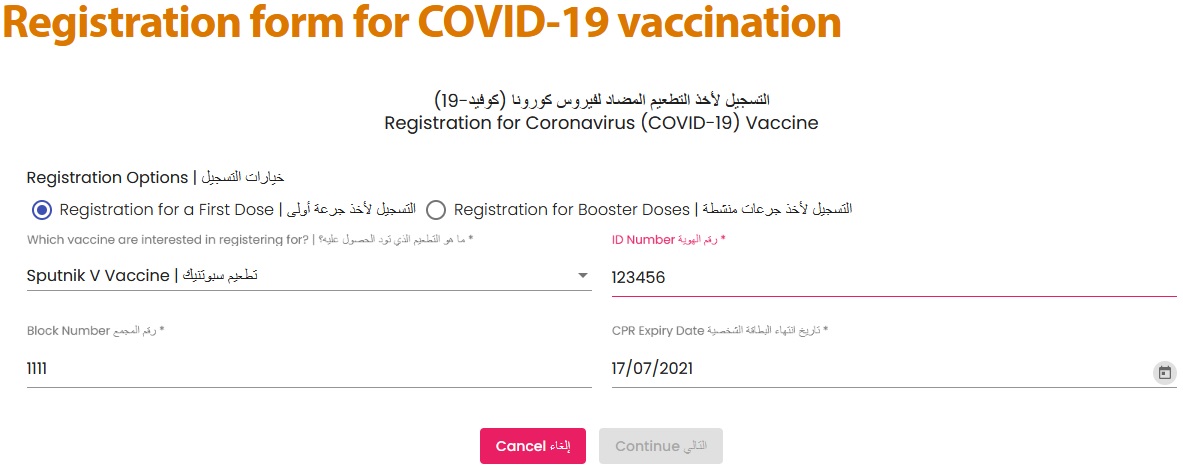 healthalert.gov.bh Registration Form for COVID-19 Vaccination Bahrain : Ministry of Health