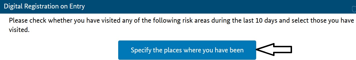 Please check whether you have visited any of the following risk areas during the last 10 days and select those you have visited.
