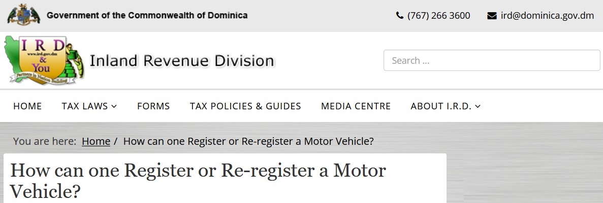 Website : http://ird.gov.dm/how-can-one-register-or-re-register-a-motor-vehicle