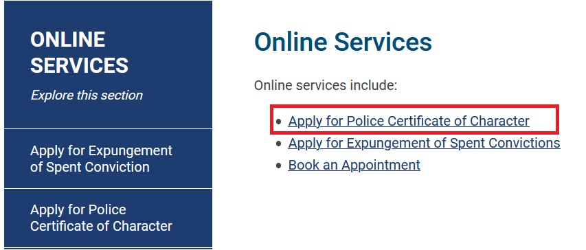 ** Present the printed application form to the Post Office and pay for the Certificate of Character.