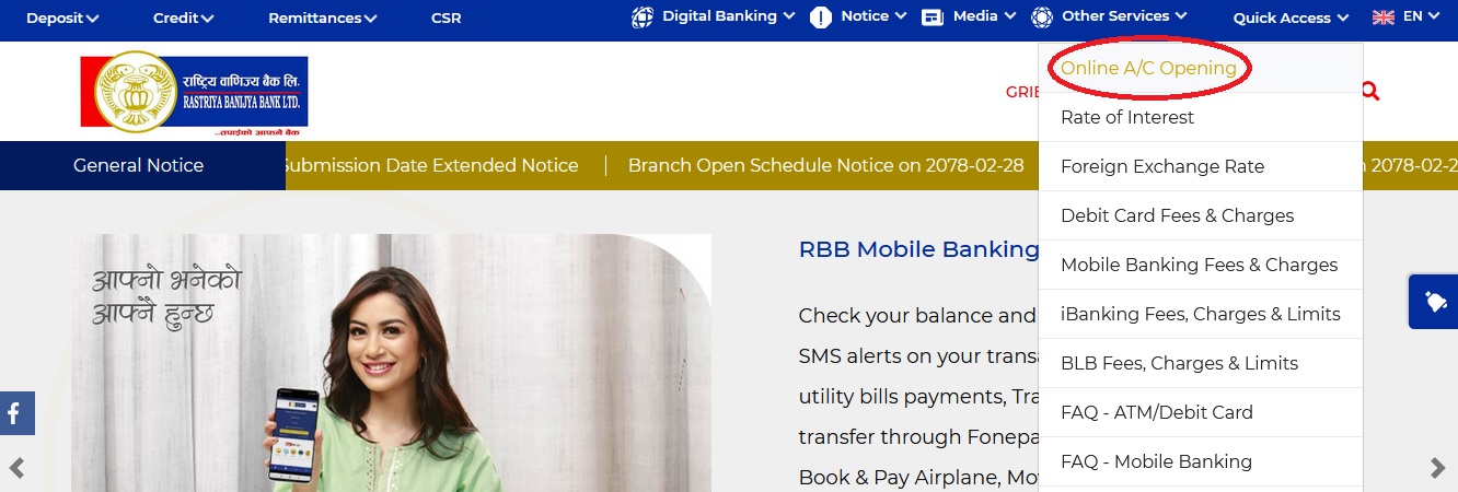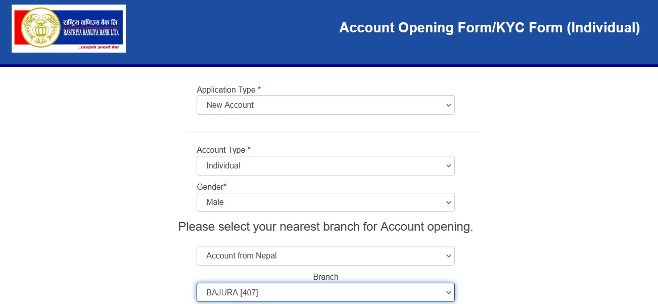 Rastriya Banijya Bank Online A/C Opening Nepal : onlineac.rbb.com.np