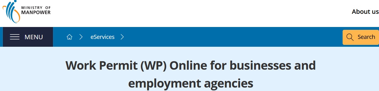 Website : https://www.mom.gov.sg/eservices/services/wp-online-for-businesses-and-employment-agencies
