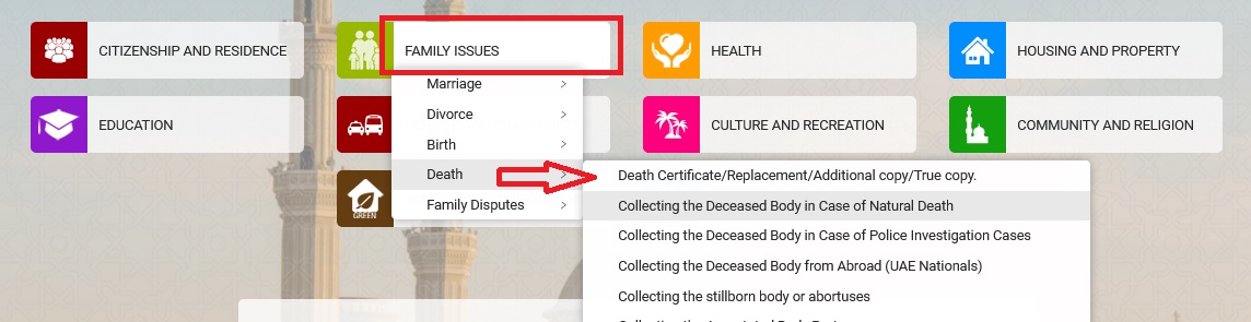 ** Collect the “Burial Permit” to bury the deceased body in Sharjah cemeteries.