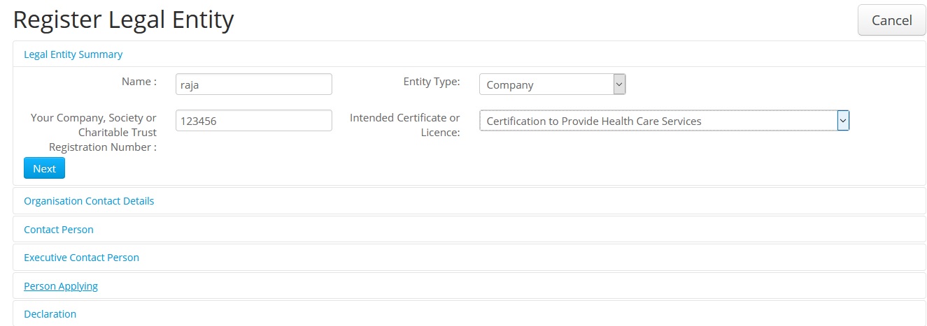 Step 1: Go to the link https://providerregulation.health.govt.nz/oprans/legal/new