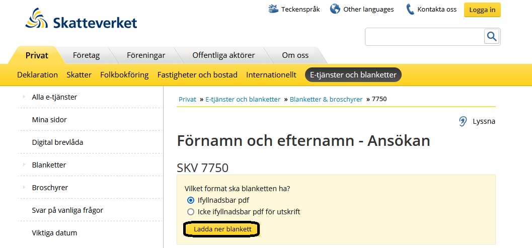 Related / Similar Status : Skatteverket ID Card Application Sweden