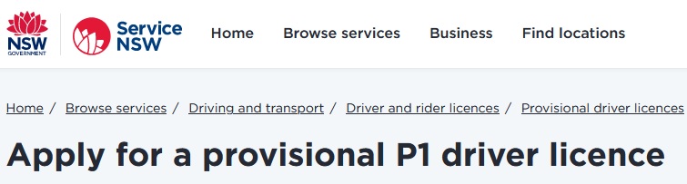 Website : https://www.service.nsw.gov.au/transaction/apply-provisional-p1-driver-licence