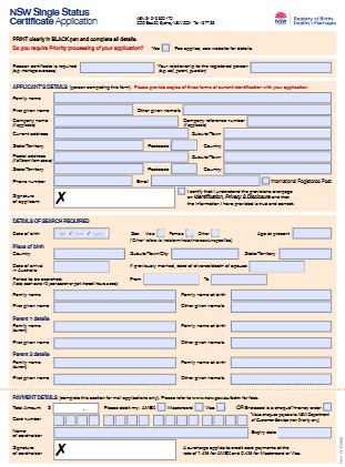 ** Download and complete the NSW Single Status Certificate Application – PDF.