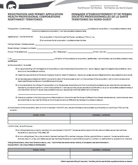 Application Form : https://www.hss.gov.nt.ca/sites/hss/files/application-package-registering-professional-corporation.pdf