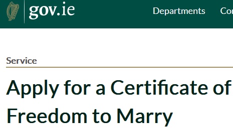 Website : https://www.gov.ie/en/service/apply-for-a-certificate-of-freedom-to-marry/