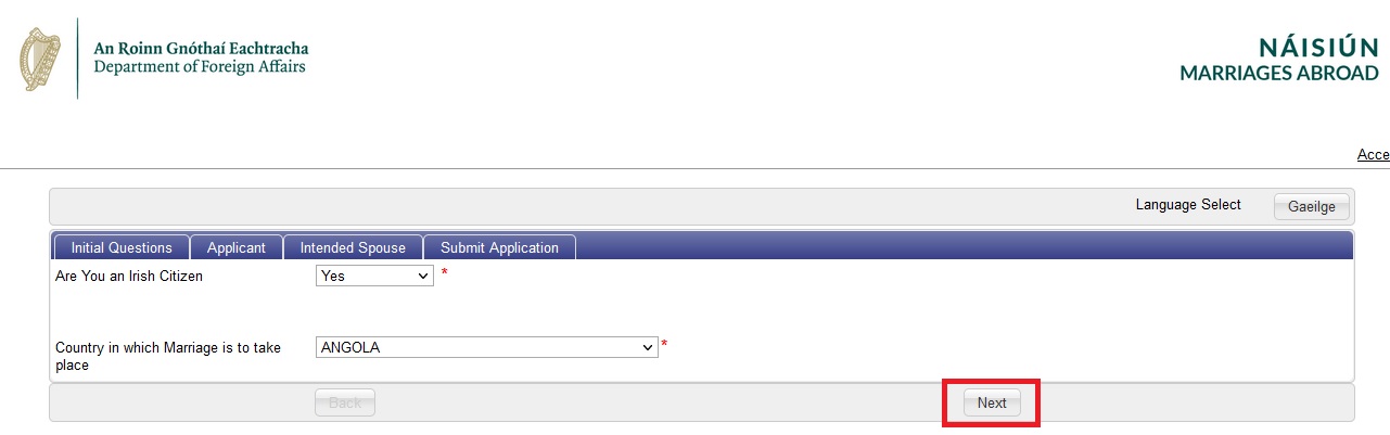Step 1: Go to the link https://marriagesabroad.dfa.ie/eseries/uiid151989596/fmr301.xsp?t=1662197474150