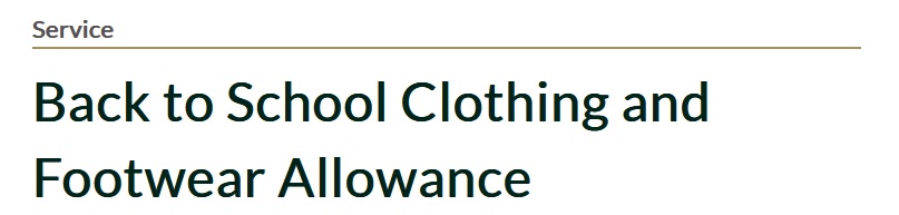 Facility Name : Apply for Back To School Clothing & Footwear Allowance
