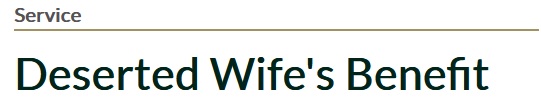 ** Deserted Wife’s Benefit is a payment made to a woman deserted by her husband. Entitlement to the payment is based on social insurance contributions paid by the woman or her husband.