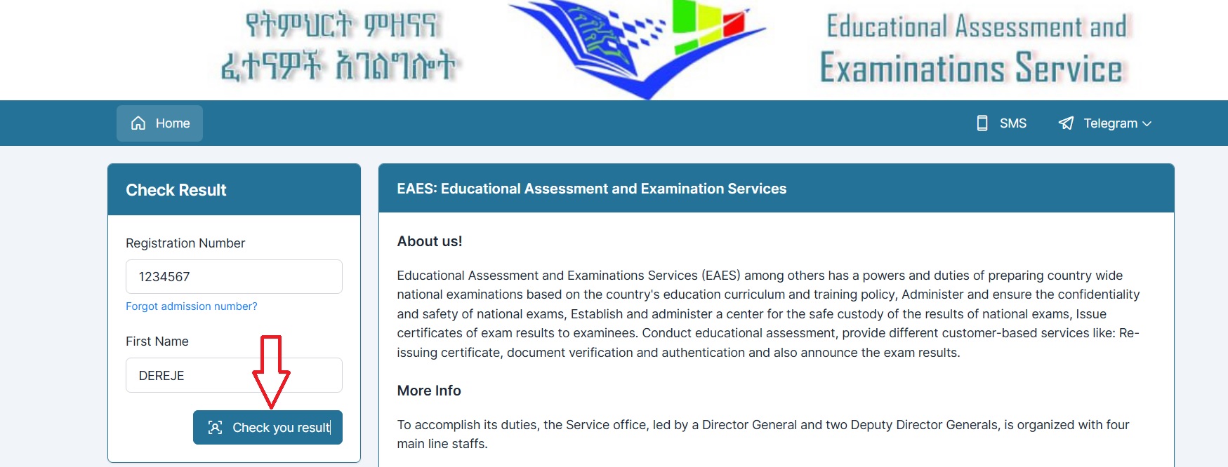 Step-1 : Go to the link https://result.neaea.gov.et/