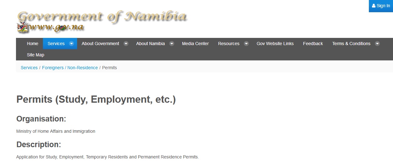 Study/ Employment Permits Namibia : Ministry of Home Affairs & Immigration