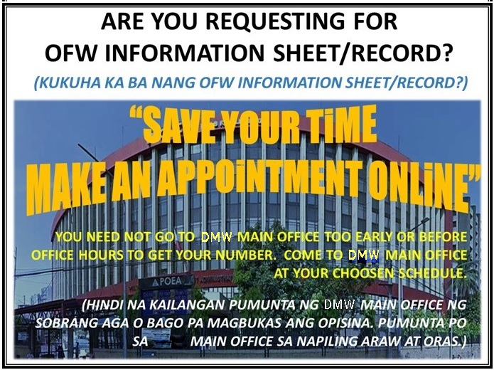 Since the request for verification/certification of OFW Records is done through online appointment system, OFWs: