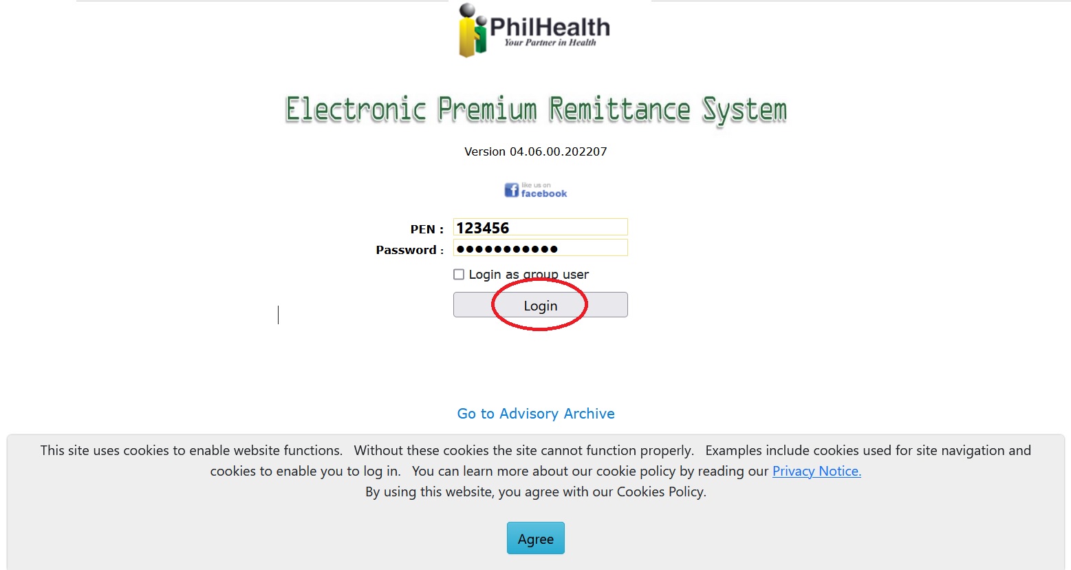 Step-2 : Enter the PEN and Password