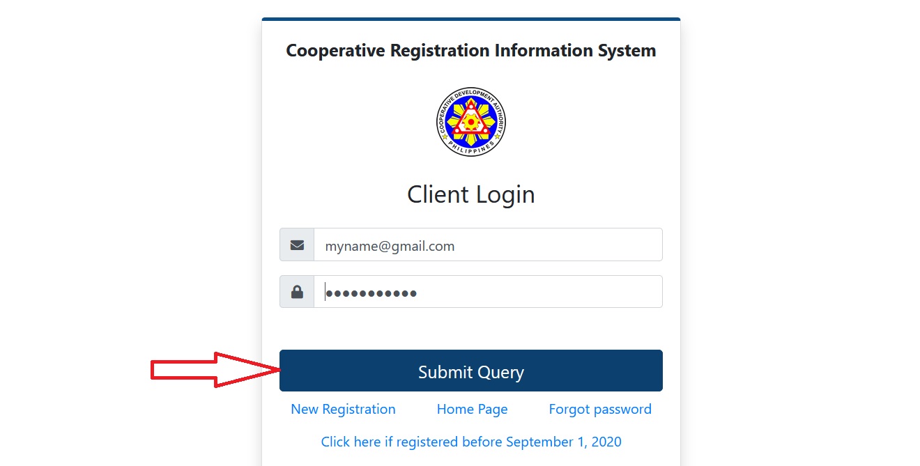 1. Log in to the E-CoopRIS system using your registered email address and password.