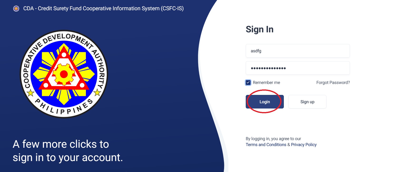 Step-5 : Click On “Login” Button to access Credit Surety Fund Cooperative – Information System (CSFC-IS).