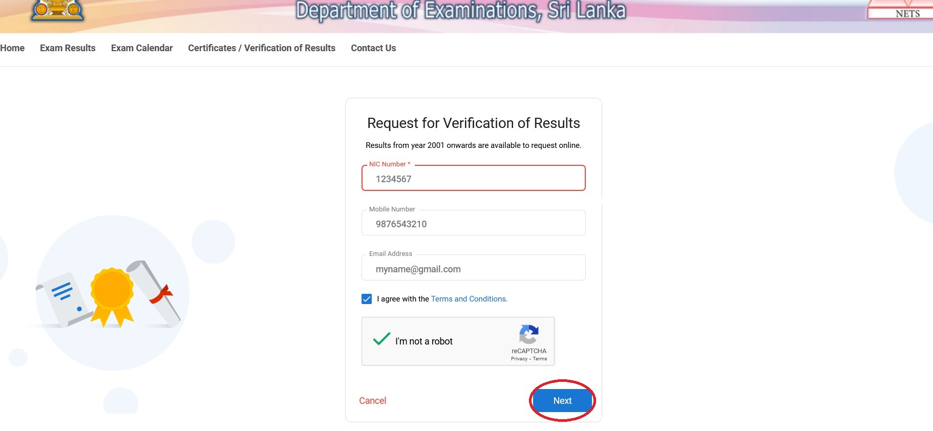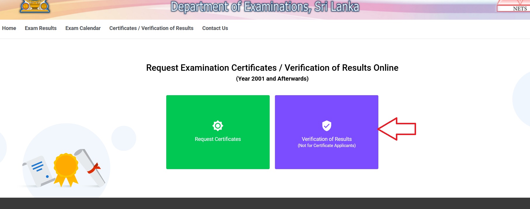 certificate.doenets.lk : Request for Verification of Results Sri Lanka