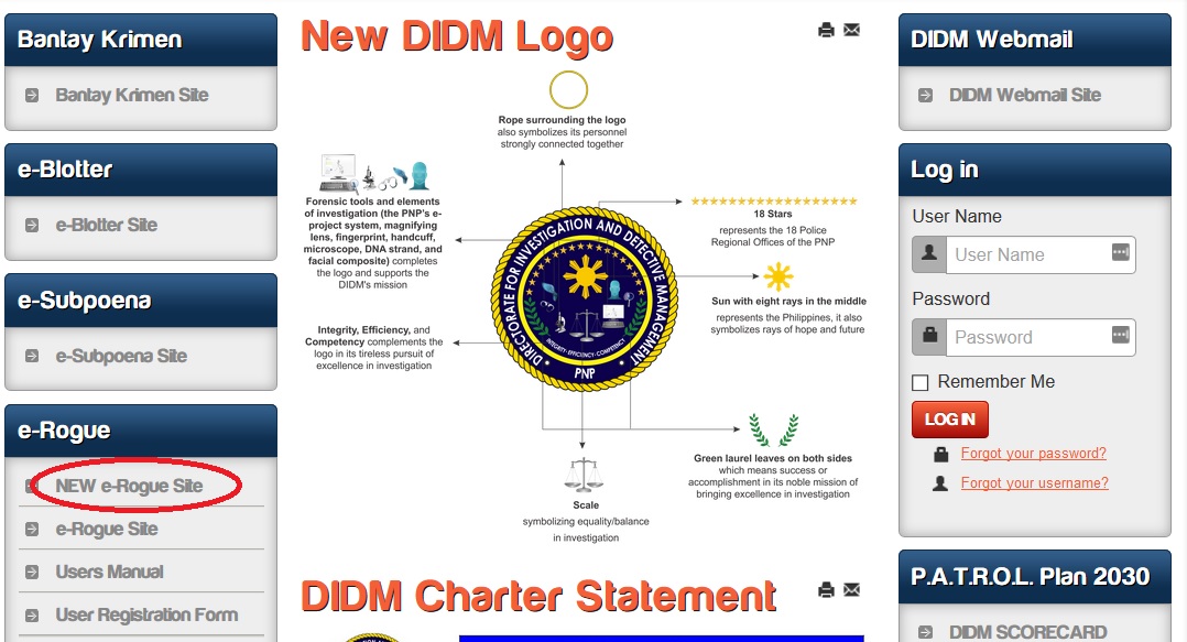 didm.pnp.gov.ph eRogue Registration System Philippines : Directorate for Investigation and Detective management