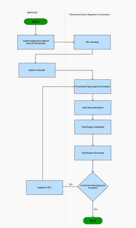 Step 6 : A field Report is submitted and the Telecommunication Regulation Commission reviews reports. Thereafter the Full Final approval is Granted.