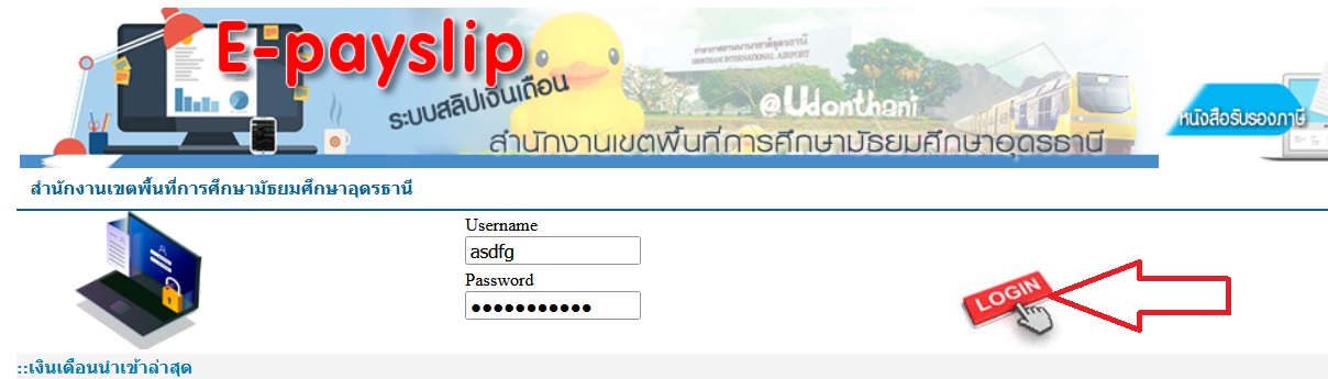 There might be a dedicated section for staff on the Udon Thani Secondary Educational Service Area Office website (https://www.udoninternationalschool.com/en/home/) where you can access your E-Payslip. Look for a section titled “Staff Login” or “E-Payslip” after logging in with your credentials (if applicable).