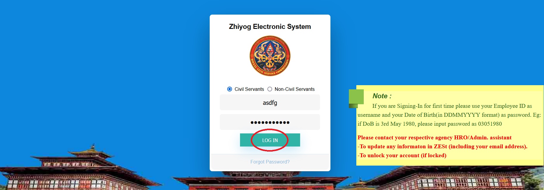 zest.rcsc.gov.bt Zhiyog Electronic System Bhutan : Royal Civil Service Commission