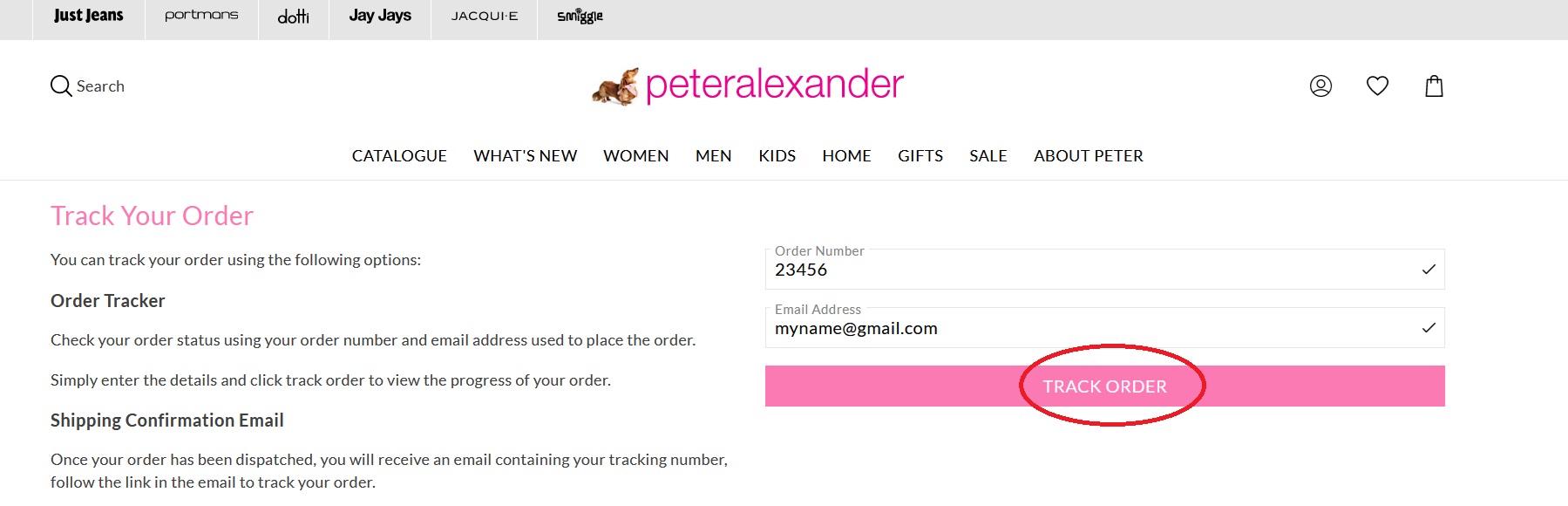 Peter Alexander Order Tracking Australia : peteralexander.jgl.com.au
