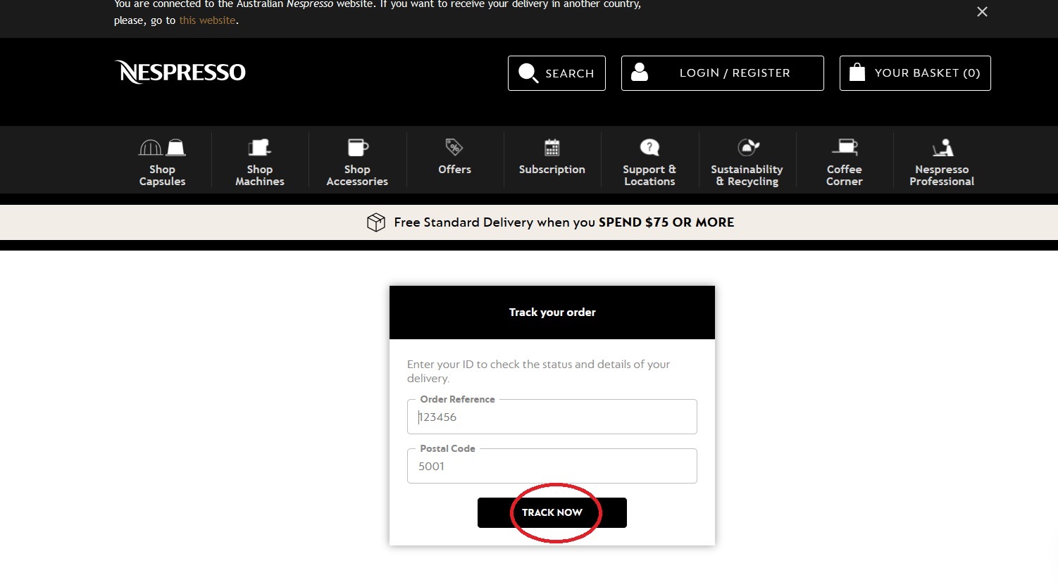 Step-1 : Go to the link https://www.nespresso.com/au/en/track-your-order
