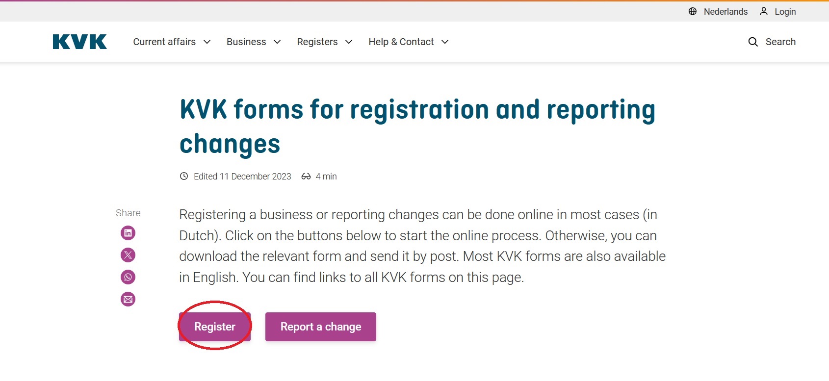 If you decide to start a new company, fill out the form on the KVK website, and make an appointment to register – or have a civil-law notary do that for you.