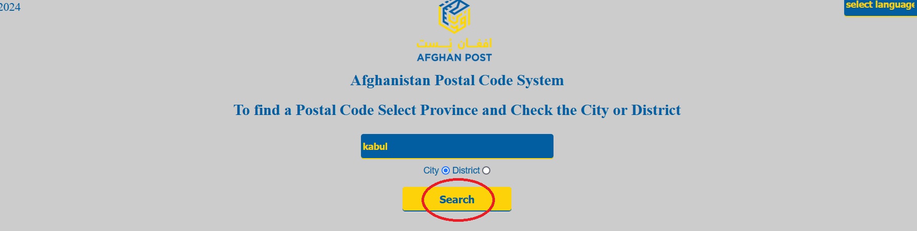 To find a Postal Code Select Province and Check the City or District (Afghanistan Postal Code System)