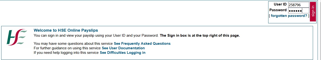 You can sign in and view your payslip using your User ID and your Password. The Sign in box is at the top right of this page.