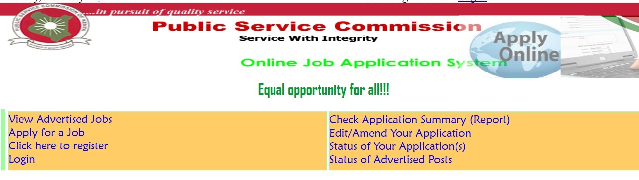 This Online Recruitment and Selection system has been developed by the Public Service Commission as a platform to enable job applicants apply for various advertised vacancies in the Public Service.