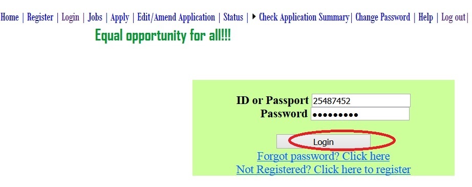 c) To apply for any advertised job, log into the system using the ID / Passport No and the Password created in (b) above.