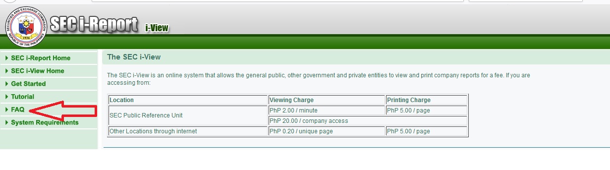 ** Since the SEC Documents Online facility is a pay-per-use system, we are in the process of arranging for the electronic payment system as one of the modes for the procurement of pre-paid load needed to access the system. In the meantime, pre-paid account may be purchased from the Securities and Exchange Commission Head Office which is located at the ground floor SEC Building, EDSA, Greenhills, Mandaluyong City, Metro Manila.