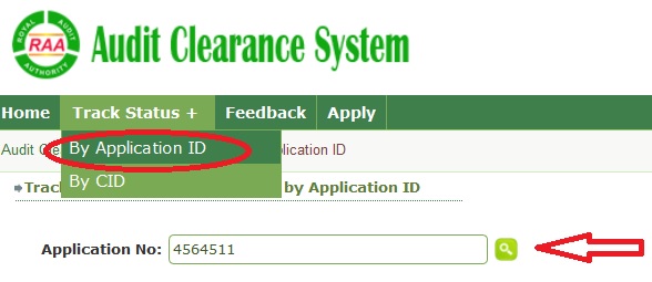 Click “Track Status” button to find out the status of application. After entering the Application No. or CID No., the application will be either approved or rejected.