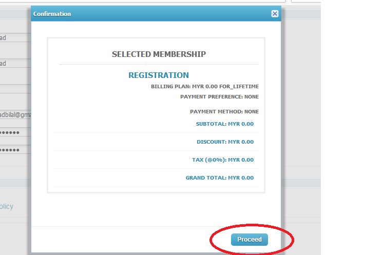 i) Fill in your full name (as IC – if individual) or company name (if practice), user id, email address and desirable password.
