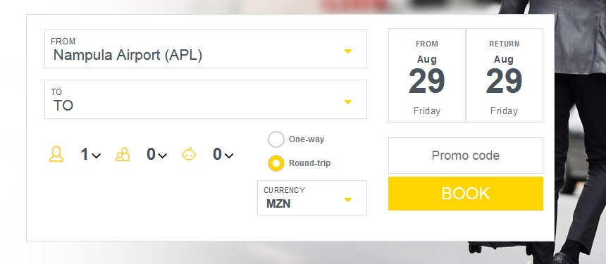 Enter your origin, destination, travel dates and number of passengers in the ‘Book Your Flight’ box on the left-hand side of the site. Click ‘Continue’ to check availability.