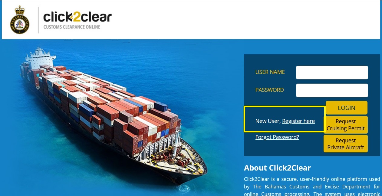 Website : https://www.bahamascustoms.gov.bs/imports-and-exports/about-click2clear/