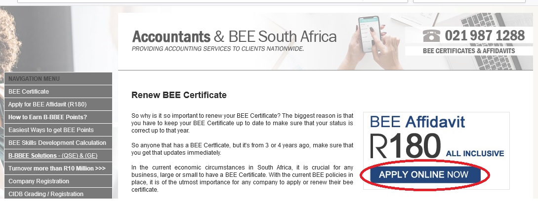 You can simply just fill in the application form on our website and apply for a new BEE Certificate. We keep track and will contact you when the time is due for your yearly renewal. We will thus from now on, make sure that you are kept up to date with your BEE Certificate.
