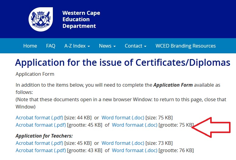 Website : https://wcedonline.westerncape.gov.za/application-issue-certificatesdiplomas